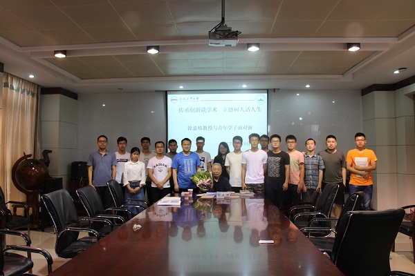 徐嘉炜教授首先围绕发现以及研究郯庐断裂系的风雨历程,讲述了青年学子成才的基本要素:一是心有所想,立志为人类发展做贡献;二是抓住机遇,理论知识学习和实践并重;三是迎难而上,奋斗到底。接着他结合自己毕生的学术之路,希望同学们做到四个坚持:坚持站在前人研究的肩膀上,坚持博采众家之长,坚持点滴积累和随时记录思想火花,坚持把经验上升为科学。最后,他鼓励广大学子要树立专业自信、能力自信,以学术兴趣和钻研精神为舟,早日从树苗成长为对社会有用的参天大树。会后,徐嘉炜老师为青年学子签名赠书,学生向他献花并合影留念。