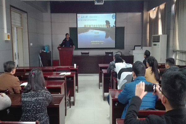 报告中,王文科教授分析了旱区地下水文过程的特点及其与生态环境之间极其复杂的关系,总结了自己团队近年来在旱区地下水文与生态效应方面的研究成果,将实验室尺度、场地尺度和野外尺度结合,动力场、温度场、化学场和生态环境结合,采用物理模拟、野外试验与数值模拟结合等方法,揭示旱区地下水文过程与生态环境的耦合机制。