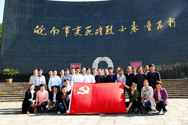 第二天,党员们来到安徽泾县参观爱国教育基地——皖南事变烈士陵园,缅怀在皖南事变中牺牲的英雄们。在皖南事变烈士陵园纪念碑前,全体党员在李宏伟副书记的带领下重温入党誓词,雄壮的宣誓声回荡在皖南事变纪念碑广场上,肃穆而庄严。