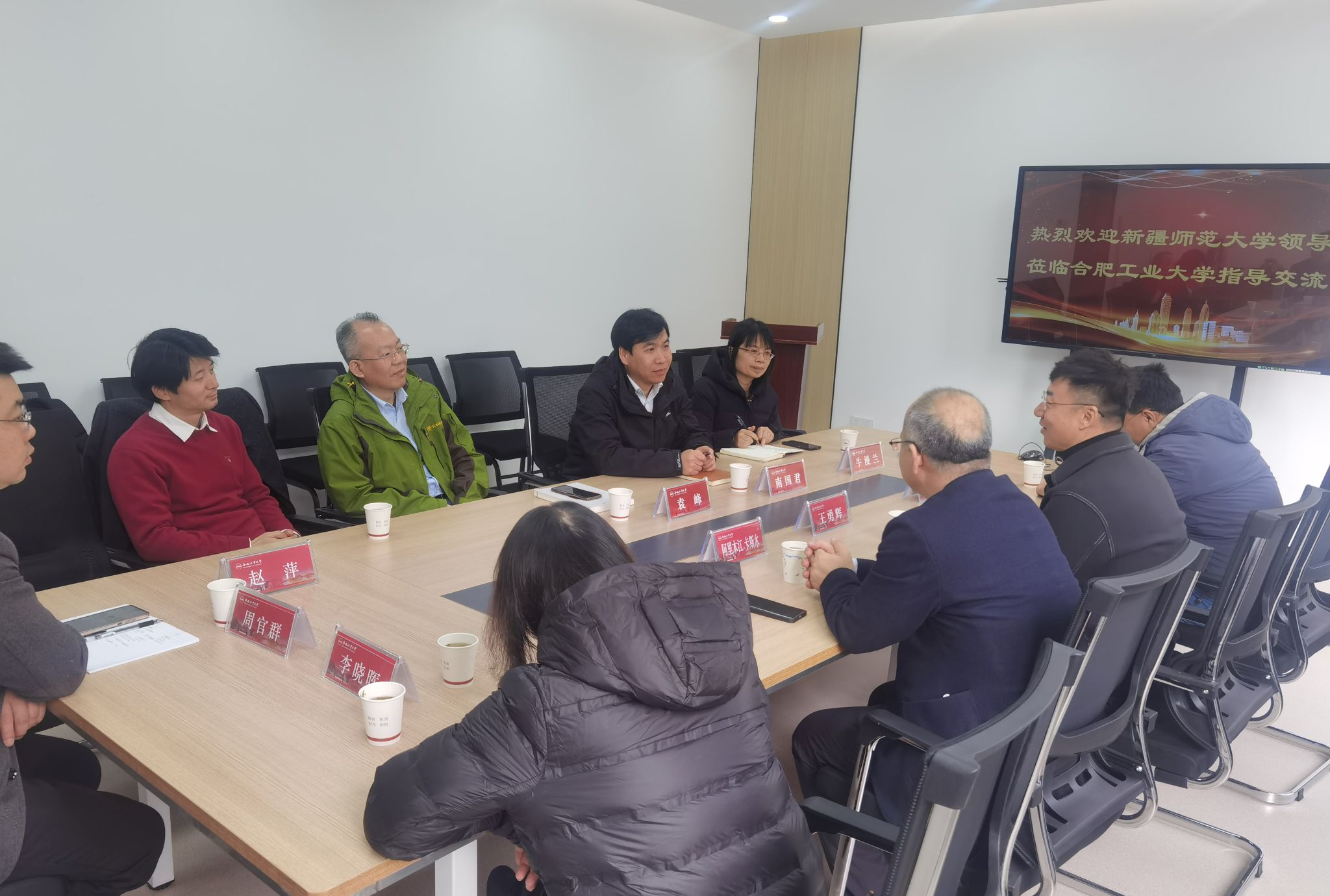 王勇辉对学院的热情接待表示感谢,并详细介绍了新疆师范大学地理科学与旅游学院的专业设置、师资力量、学科建设、人才培养和招生概况。阿里木江·卡斯木副院长从科研成果、平台建设、合作交流等方面介绍了新疆师范大学的相关情况。