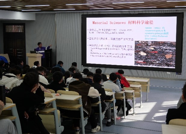 报告中,姜大志教授结合多位国内外研究专家的工作,由浅入深地回顾50年来构造地质学的发展,形象生动地解释了现代构造地质学的一些重要问题,以及细观力学的基本原理和处理多尺度构造变形的思路、研究现状,并展望未来工作。报告会结束后,姜大志教授与在场同学互动,针对提问进一步举例解答多尺度、多过程耦合的重要意义。