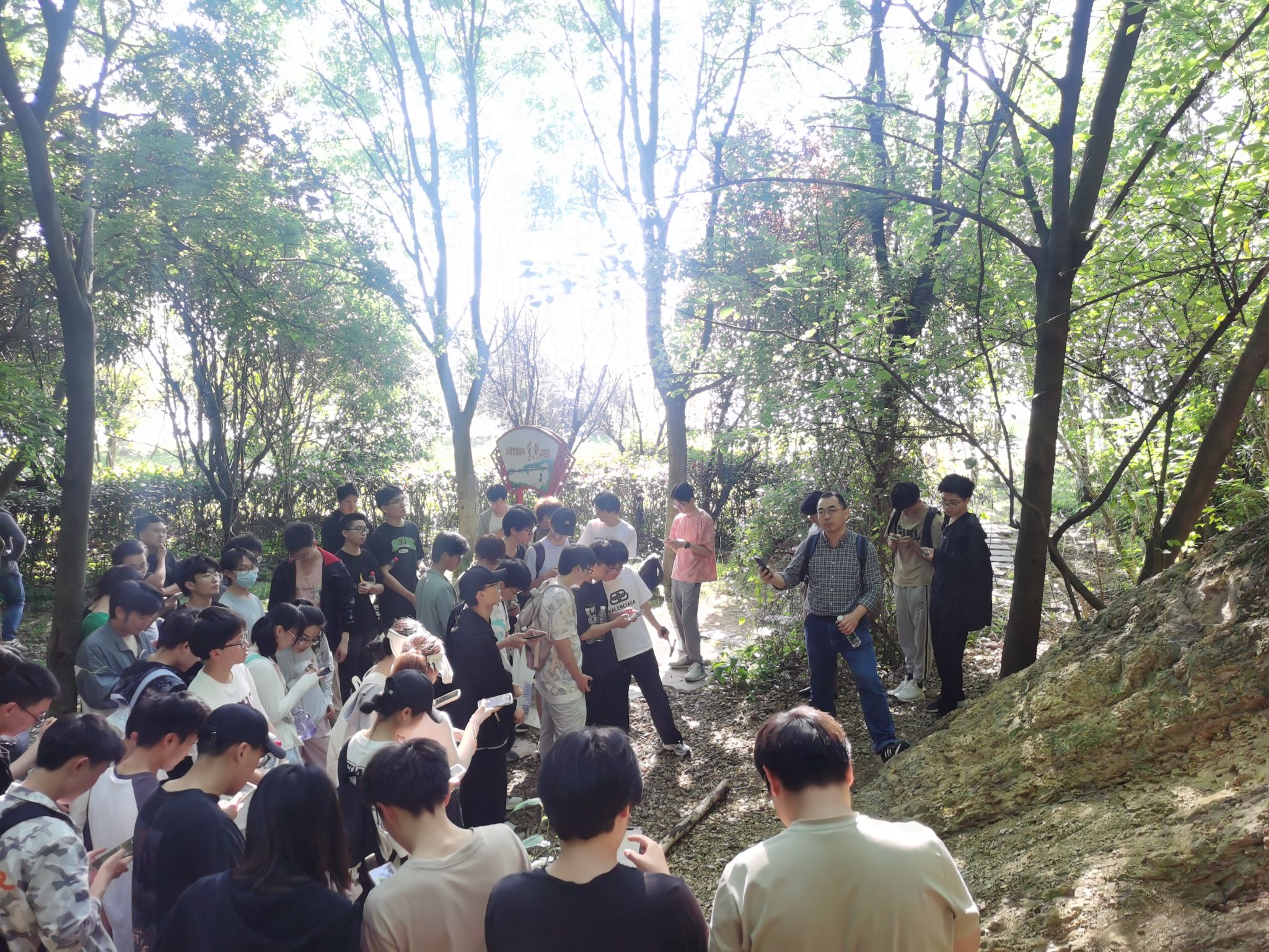 在巢湖湖畔的龟山公园,每组选手相互配合,找到了埋在公园各个角落的“宝藏”,并在最快的时间内完成了定向越野任务,每个小组对自己挖到的地质标本进行了描述和讲解。在野外地质技能竞赛中,带队的老师们先后介绍了中国第五大淡水湖巢湖的形成历史、巢湖地区沉积岩反映的地球演化历史、发育的不同种类的矿床以及构造活动等。同学们结合书本上学到的理论知识,对野外地质剖面进行了细致的观察和描述,挖到了许多腕足、节肢和头足动物化石,绘制了野外地质素描图。在地学知识竞赛过程中,同学们认真思考、积极参与、竞相抢答。