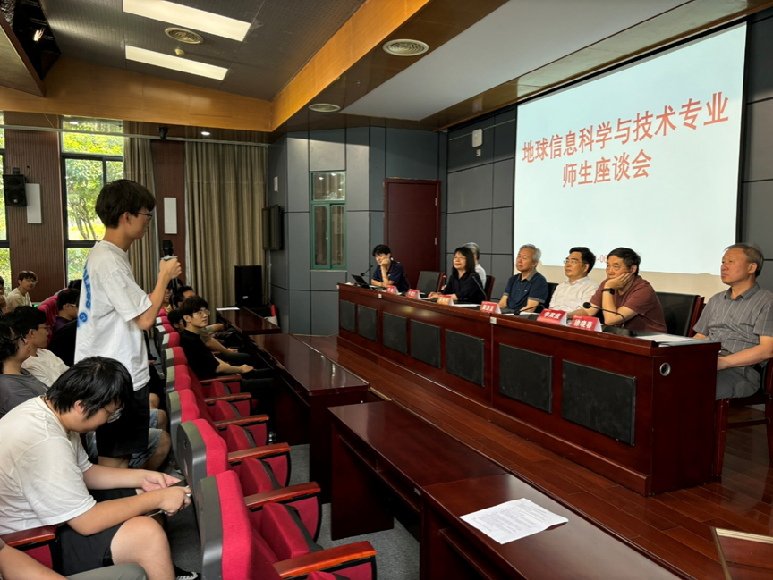 座谈会上,宋传中教授作为老教授代表介绍了对地球信息科学与技术的认识,并且对学生们如何学好地球信息科学与技术专业提出了殷切希望。闫峻教授作为教师代表着重介绍了同学们关心的学业就业等相关话题,并对专业的特点进行了阐述,鼓励同学们为学好专业而努力奋斗。
