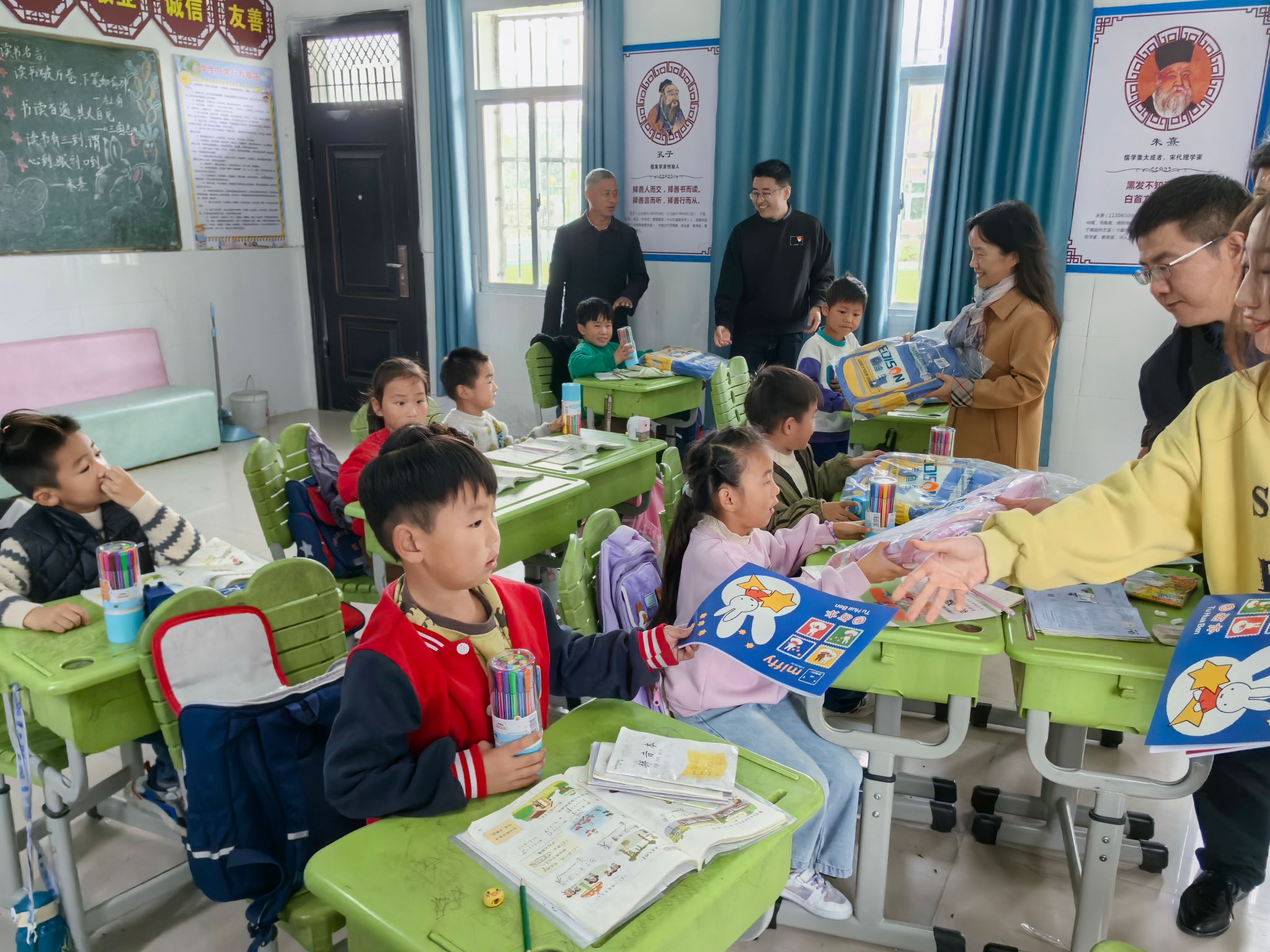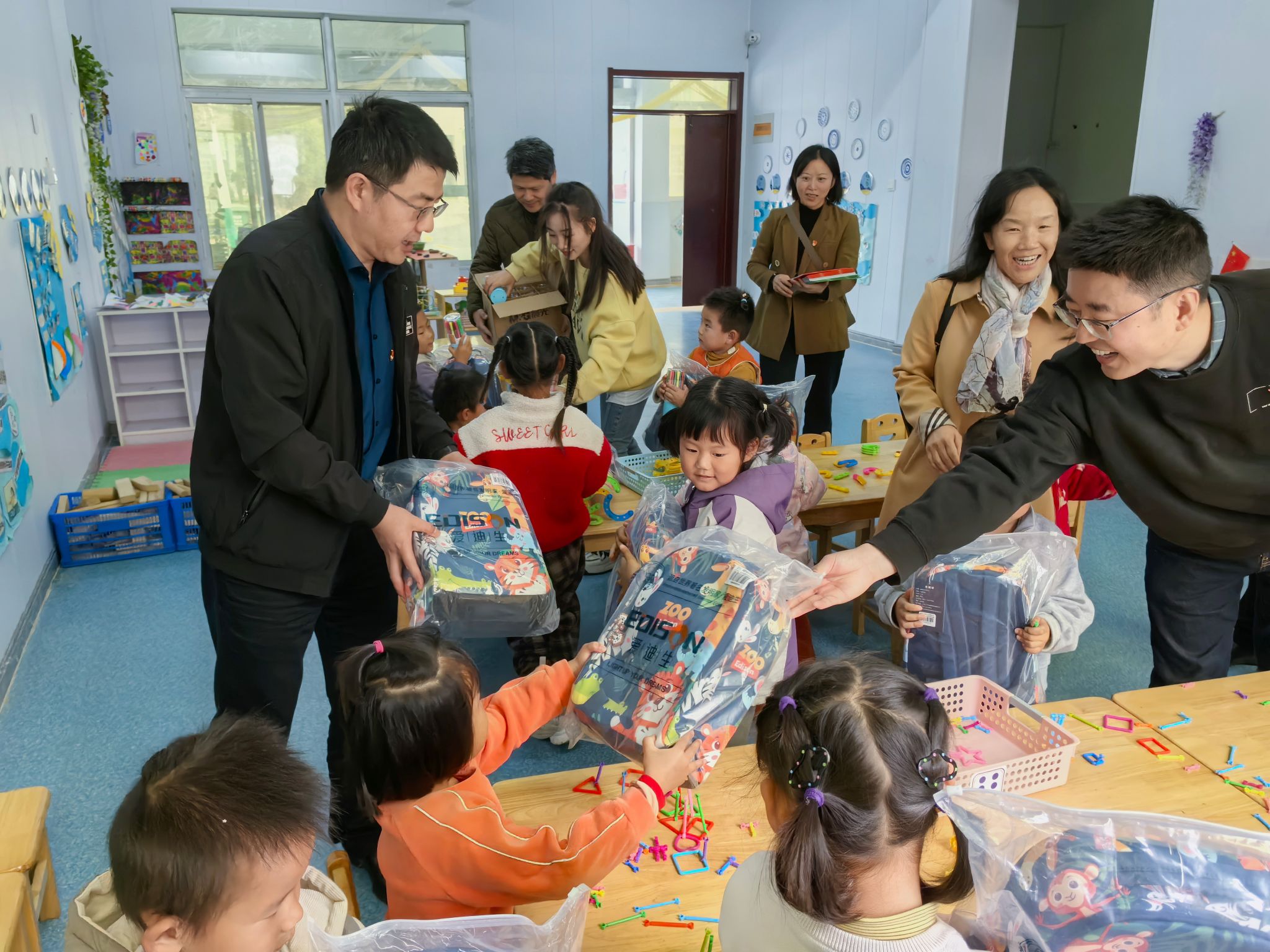 在砂坝幼儿园、砂坝小学,学院为40多名幼儿园小朋友和小学生送上了含有书包、彩笔、画画本等学习用品的爱心礼包,并和孩子们进行亲切交谈,详细了解他们的学习、生活和健康情况。