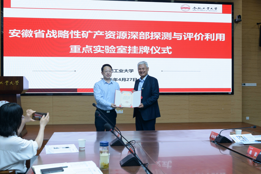 4月27日上午,安徽省战略性矿产资源深部探测与评价利用重点实验室挂牌仪式暨学术交流研讨会在taptap点点官方网站隆重举行。校长郑磊、中国科学院院士丁林出席揭牌仪式。安徽省地震局副局长凌学书、安徽省地矿局二级巡视员朱省峰以及安徽省科技厅、安徽省自然资源厅、安徽省公益性地质调查中心、安徽省地质调查院、安徽省勘查技术院、安徽马钢矿业资源集团有限公司等主管部门和合作建设单位有关负责同志共同出席挂牌仪式。