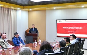 12月12日下午,taptap点点官方网站地质81级校友返校聚会在纬地楼三楼会议室温馨启幕。学院领导班子与全体地质81级校友欢聚一堂,共叙同窗情谊,共话学院发展。