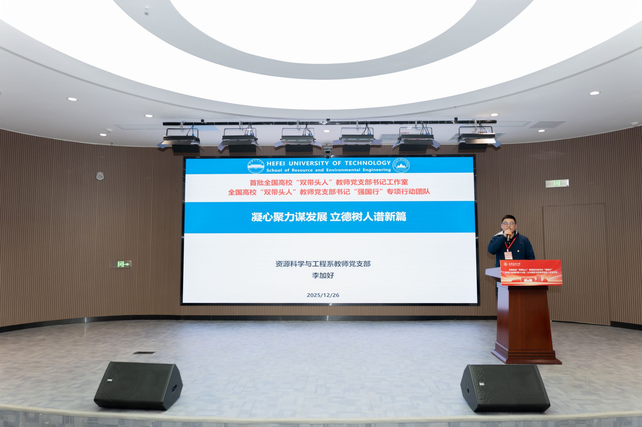 12月26日,安徽省高校“双带头人”教师党支部书记“强国行”专项行动团队第十小组(土木建筑与资源环境类)线下交流活动在安徽建筑大学举行。省委教育工委组干处相关负责同志到会指导。安徽建筑大学校党委常委、组织部部长、机关党委书记吴运传出席并致辞,组织部副部长陈泉,土木工程学院党委书记王媛,党委副书记、院长张宁,第十小组各成员单位党支部书记,土木工程学院师生党员代表共同参会。